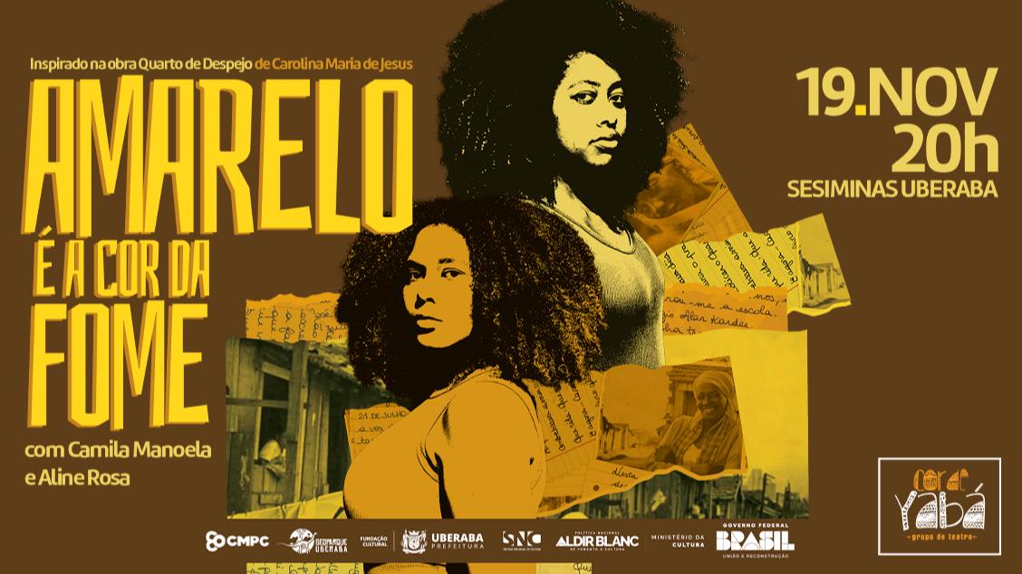 Amarelo é a Cor da Fome é um mergulho sensível e potente na realidade das favelas brasileiras, inspirado na obra Quarto de Despejo: Diário de uma Favelada, da fantástica Carolina Maria de Jesus, um dos maiores nomes da literatura negra nacional. O espetáculo da Cia Cor de Yabá atravessa a crueza e a complexidade da vida de uma mulher negra e pobre, revelando suas lutas diárias, dores, sonhos e resistências. A cor amarela simboliza não apenas a fome que corrói o corpo, mas também a fome por dignidade, justiça, afeto e pertencimento. A partir de uma narrativa poética e visceral, a montagem convida o público a encarar de frente as desigualdades sociais, ao mesmo tempo em que celebra a força, a beleza e a resiliência de quem transforma a dor em voz e presença.