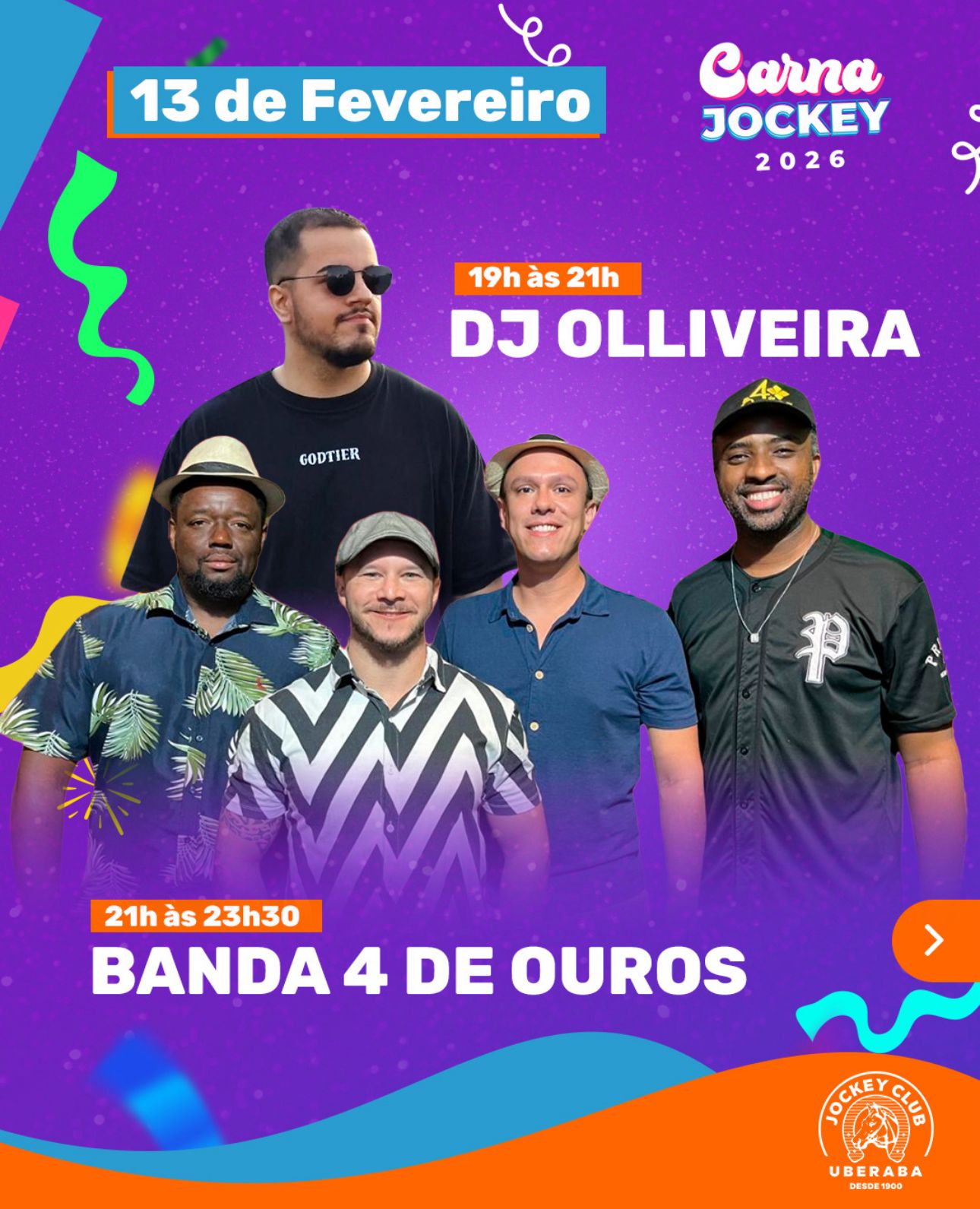 O Carna Jockey 2026 está pronto para fazer história. De 13 a 17 de fevereiro, o Jockey Club se transforma no epicentro da alegria com uma programação que não vai deixar ninguém parado. (5)