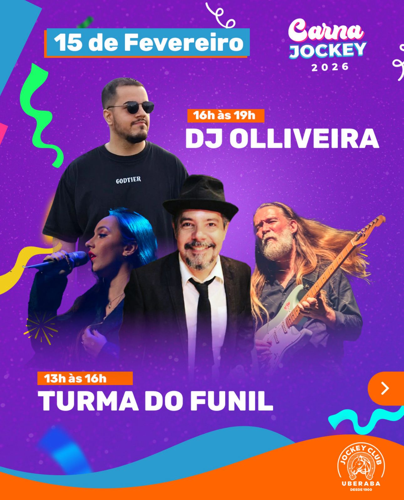 O Carna Jockey 2026 está pronto para fazer história. De 13 a 17 de fevereiro, o Jockey Club se transforma no epicentro da alegria com uma programação que não vai deixar ninguém parado. (5)