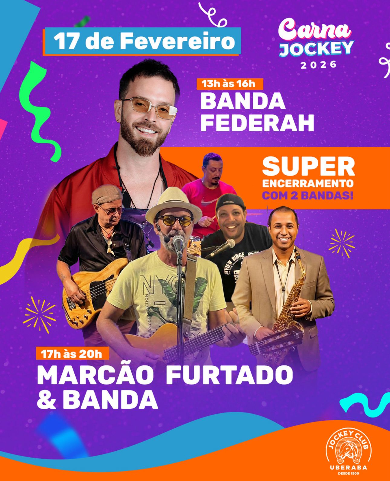 17/02: O Super Encerramento. Começamos cedo com Banda Federah e fechamos com chave de ouro com Marcão Furtado & Banda.