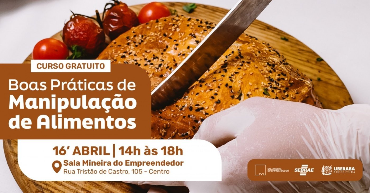 A Prefeitura Municipal de Uberaba, por meio da Sala Mineira do Empreendedor (vinculada à Secretaria de Desenvolvimento Econômico, Turismo e Inovação - SEDEC) e do Departamento de Vigilância Sanitária (vinculado à Secretaria de Saúde), com o apoio do SEBRAE, promoverão o curso presencial gratuito “Boas Práticas de Manipulação de Alimentos”, no dia 16 de Abril de 2026.