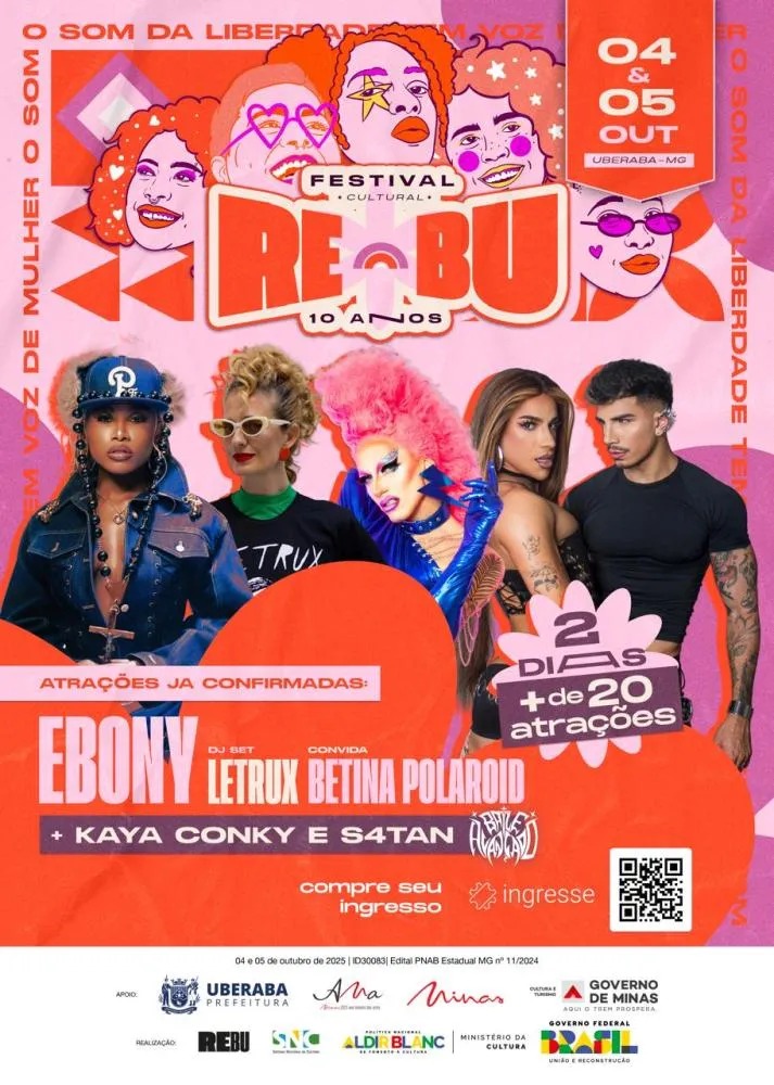 Concebido “no corpo e no cotidiano” de Uberaba, o Rebu sempre foi mais do que música. O festival se consolidou como espaço simbólico de afirmação de identidades menos visibilizadas e, nesta edição, reforça sua vocação como palco de visibilidade feminina e LGBTQIAPN+, propondo diálogos artísticos e sociais. A programação amplia o alcance do evento e reafirma seu compromisso com a diversidade e com a cultura como força transformadora.