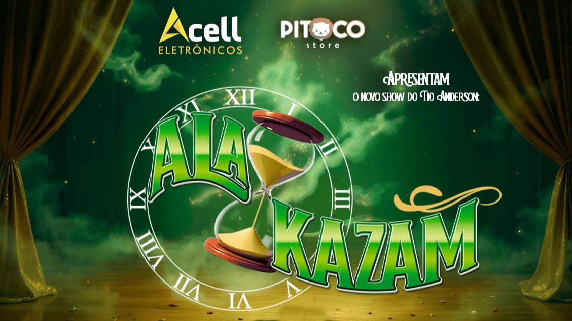 Prepare-se para uma noite mágica e inesquecível! Alakazam é um espetáculo de mágica único, onde o tempo e a magia se encontram, criando uma experiência envolvente para toda a família!