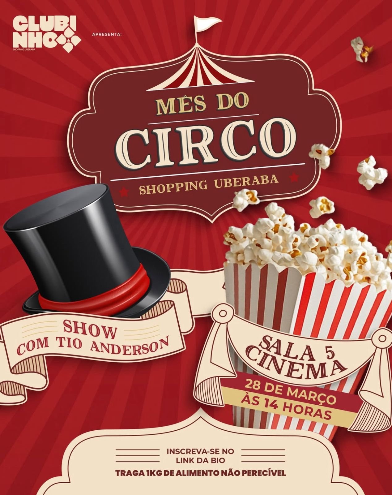 O Tio Anderson está chegando com um show cheio de mágica, brincadeiras e muita diversão para a criançada! Prepare-se para uma tarde encantadora no Cinemais.