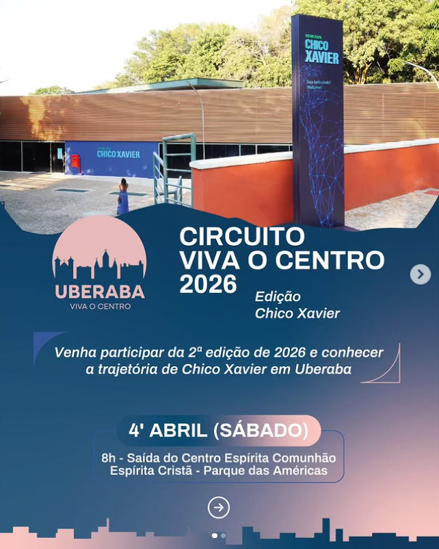 A caminhada será realizada no sábado, dia 4 de abril, com saída às 8h do Centro Espírita Comunhão Espírita Cristã, no Parque das Américas. A proposta é apresentar locais e histórias que marcaram a vida e o trabalho de Chico Xavier, promovendo um momento de aprendizado, reflexão e conexão com a história da cidade.