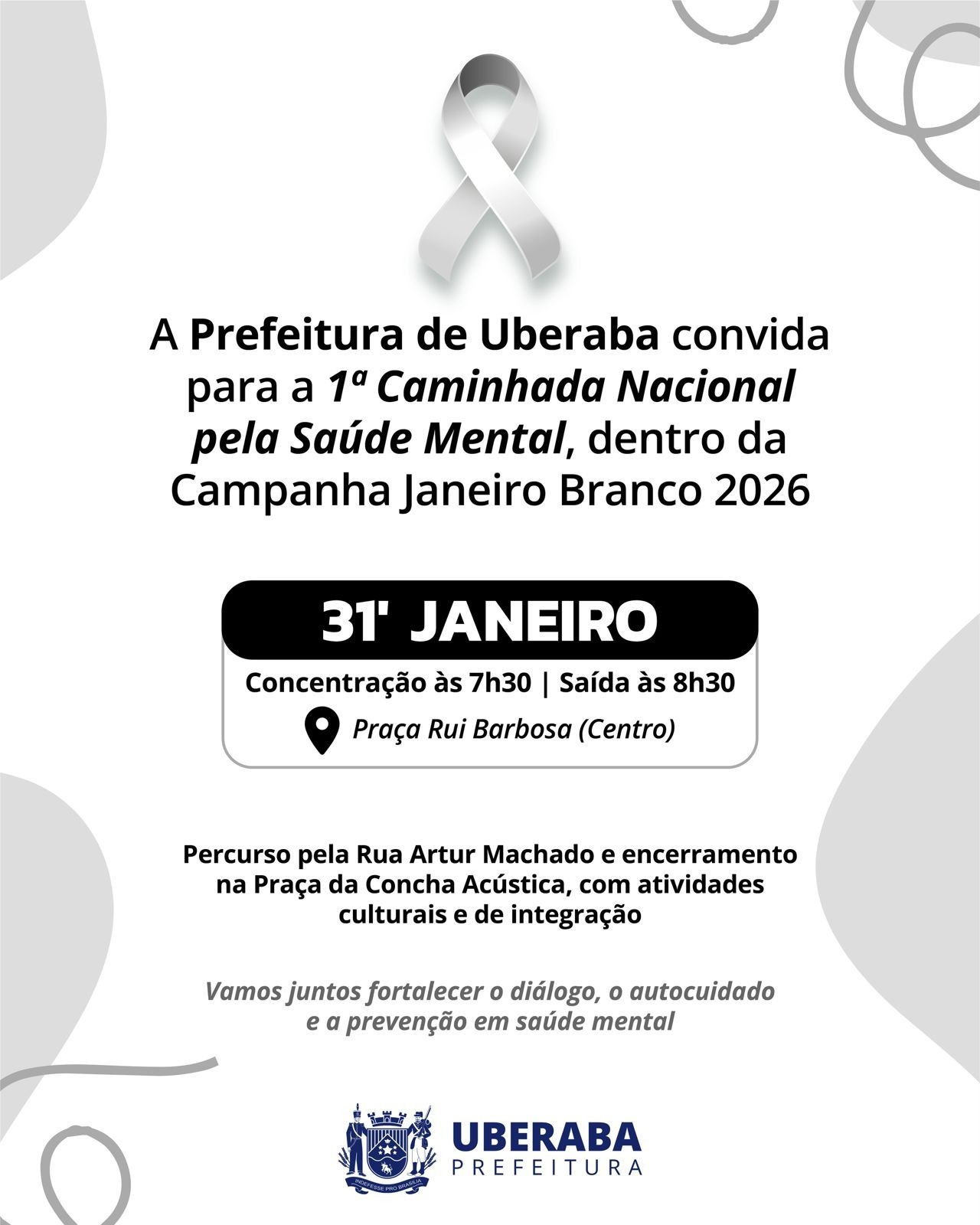 Reconhecida nacionalmente, a Campanha Janeiro Branco é respaldada por legislações federal, estadual e municipal e promove, ao longo de janeiro, ações educativas voltadas ao bem-estar emocional. Em Uberaba, a caminhada reforça o compromisso do município com políticas públicas de cuidado e atenção à saúde mental.
